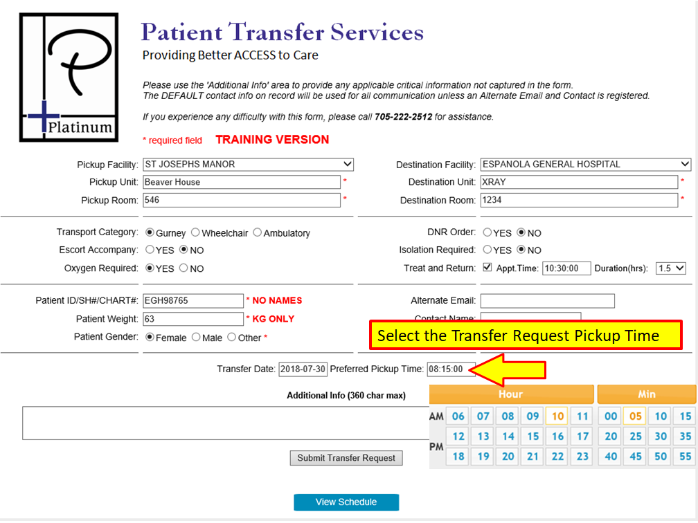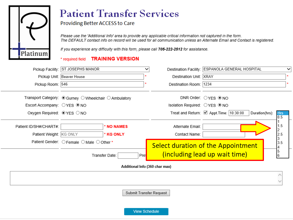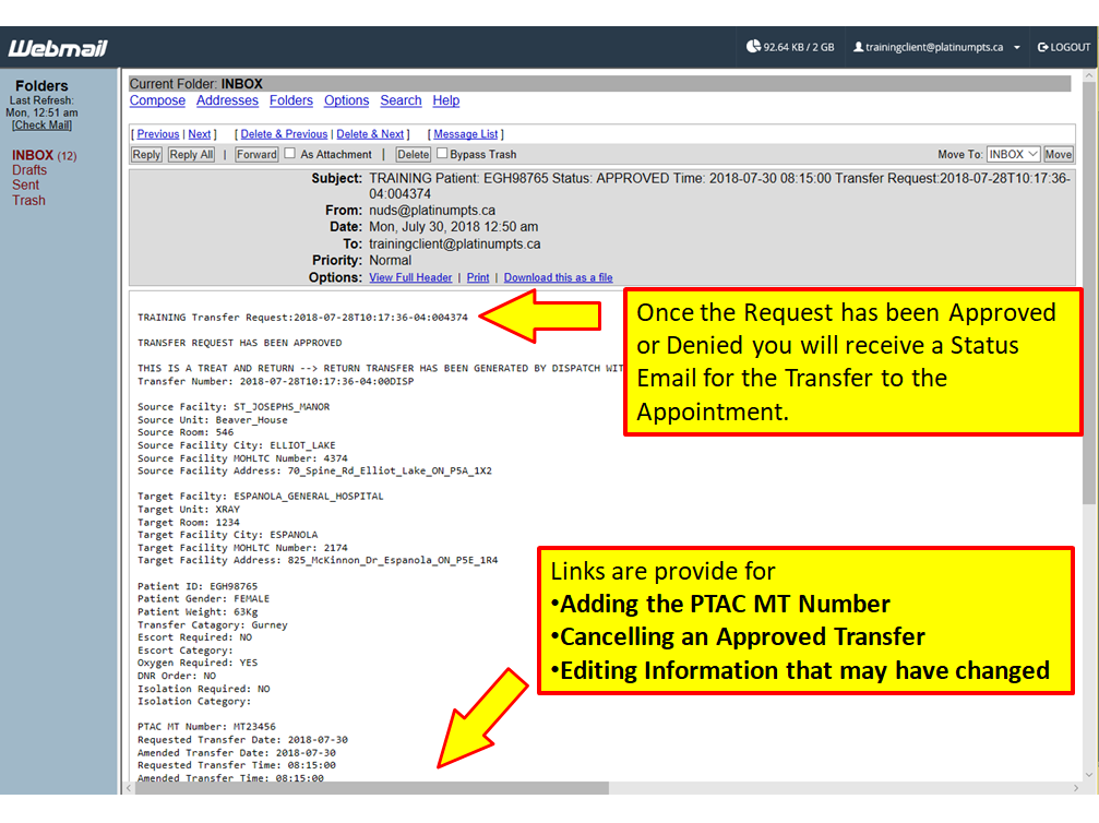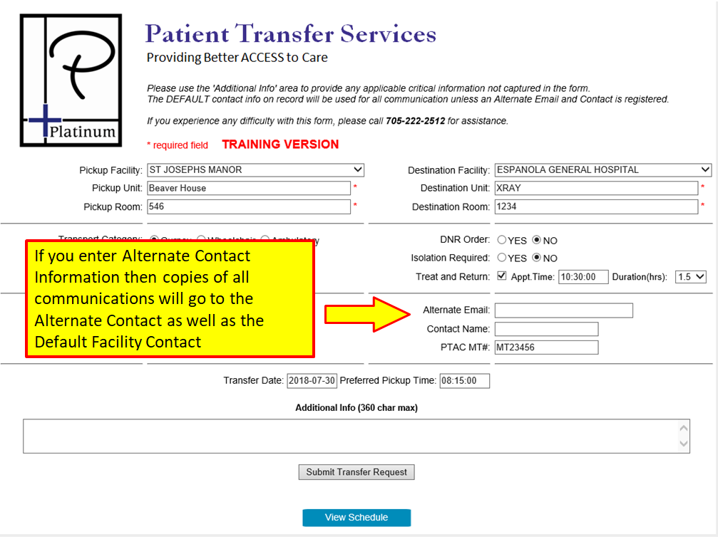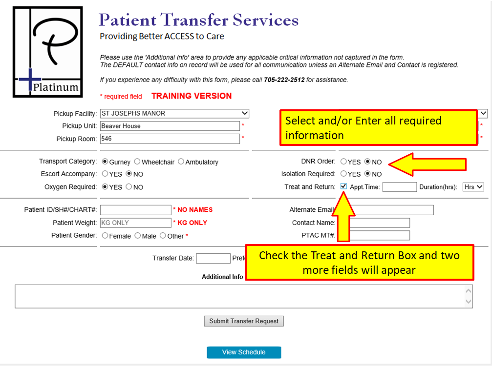 Requesting a Treat and Return or a Two Way Transfer
